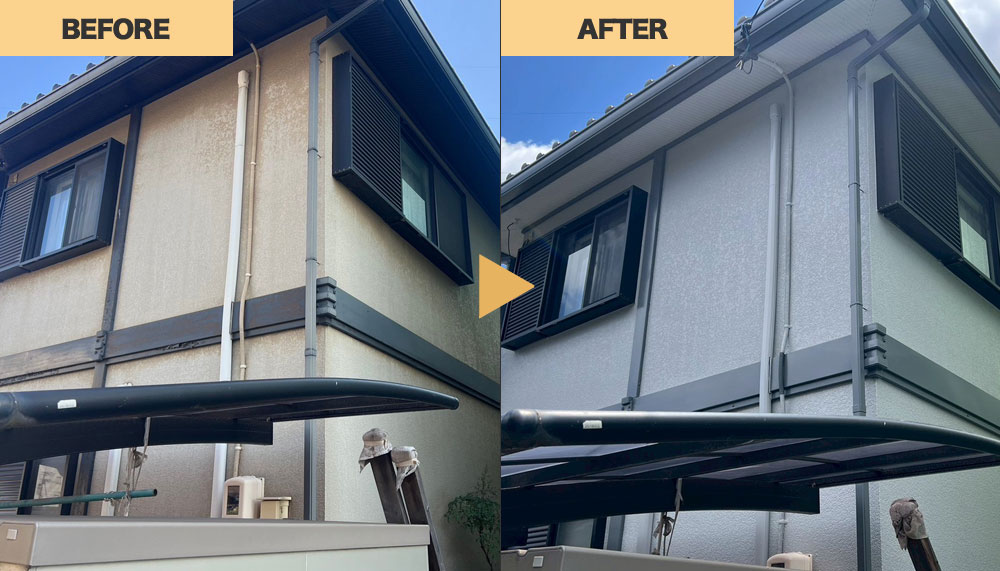 経年劣化で汚れが目立っていた外壁を、ラジカル制御型塗料「プレミアムシリコン」で明るく一新しました。